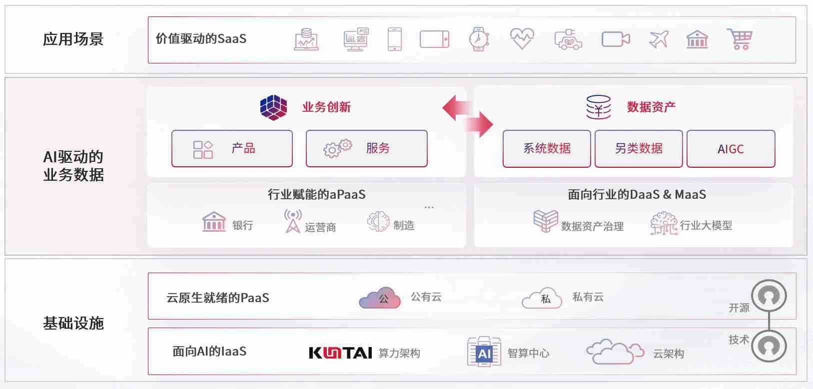 数字时代,,,围绕企业数字化转型的关键要素,,,2017金沙集团数码开创性的提出数云融合战略和技术体系框架,,着力在云原生、、、、数字原生、、AI原生和信创产业上架构产品和服务能力,,为处在不同数字化转型阶段的快消零售、、、汽车、、、、金融、、、医疗、、政企、、、、教育、、运营商等行业客户提供泛在的敏捷IT能力和融合的数据驱动能力,,,,构建跨界融合创新的数字业务场景和新业务模式,,,,助力企业级客户建立面向未来的核心能力和竞争优势,,,全面推动社会的数字化、、、智能化转型升级。。。